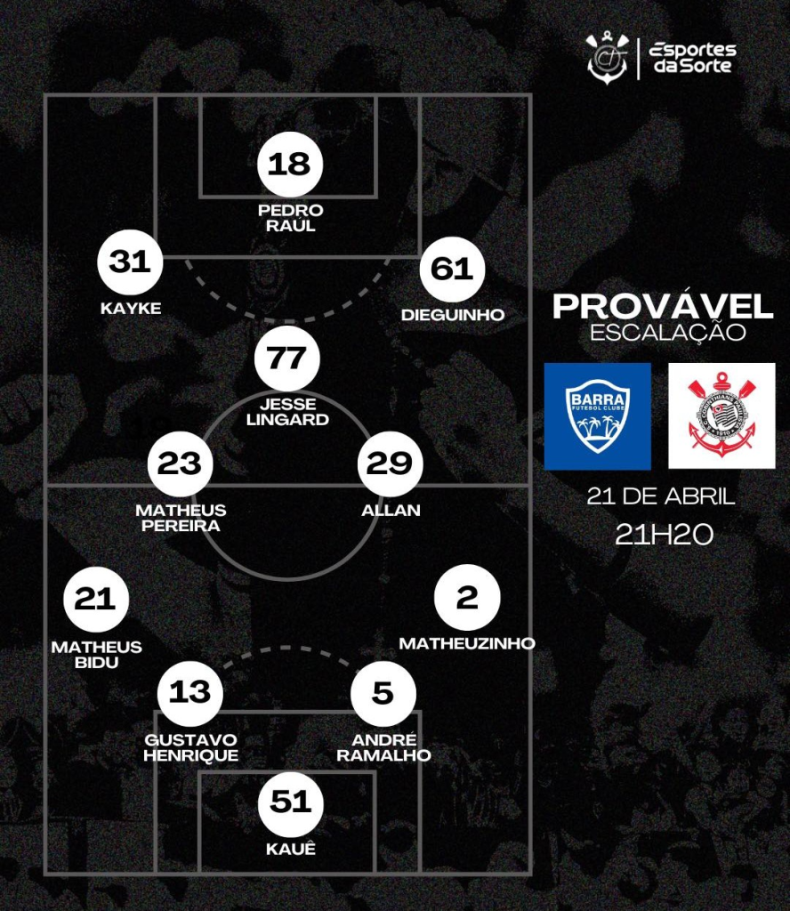 Depois do duelo contra o Barra, o Corinthians volta a campo somente no próximo domingo (26), quando enfrenta o Vasco na Neo Química Arena, pela 13ª rodada do Campeonato Brasileiro de 2026.