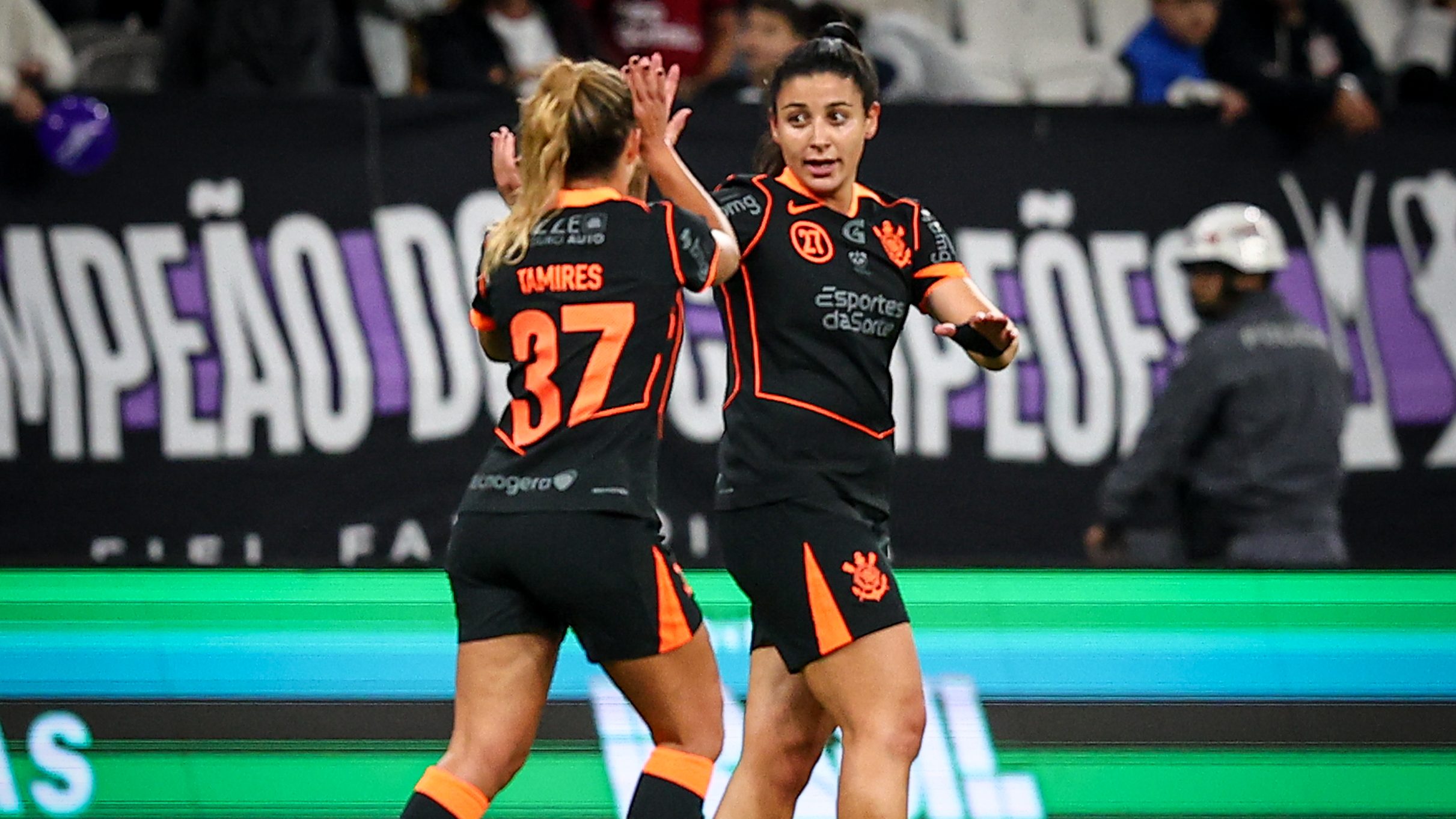 Além da participação no ritual, o clássico também contou com outra ação de apoio ao futebol feminino. O uniforme utilizado pelo time masculino trouxe referência direta à campanha “Brabas in London”, criada para destacar a participação histórica da equipe feminina no torneio intercontinental. A identidade visual da campanha foi exibida abaixo da numeração da camisa e também apareceu nos painéis de LED da Neo Química Arena.