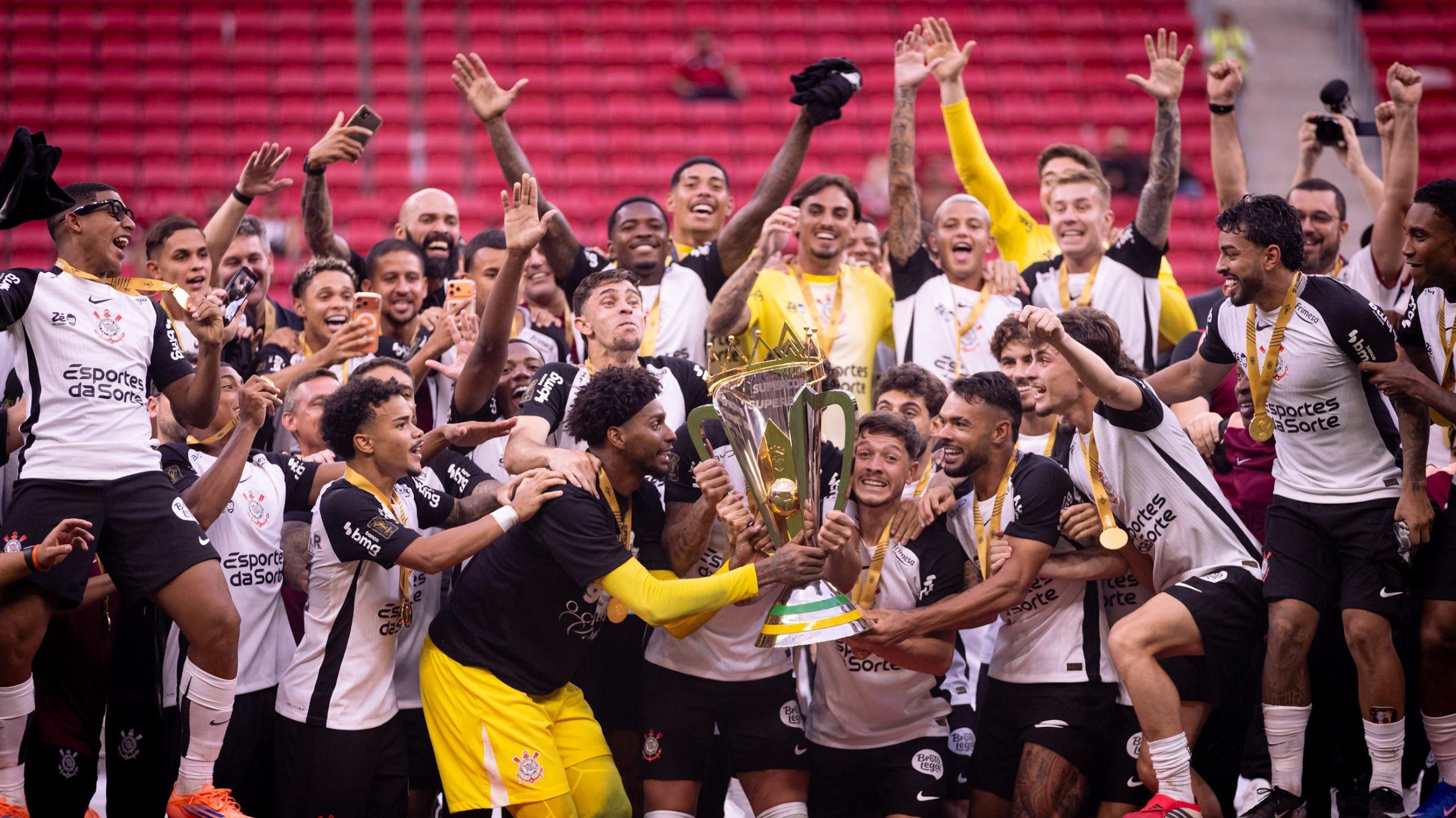De acordo com o acordo firmado com a Esportes da Sorte, o Corinthians está impedido de exibir, em sua camisa de jogo, marcas de outras casas de apostas. Internamente, o departamento de marketing avalia que a utilização do patch, mesmo como homenagem ao título conquistado, pode causar desgaste com um de seus principais parceiros comerciais.