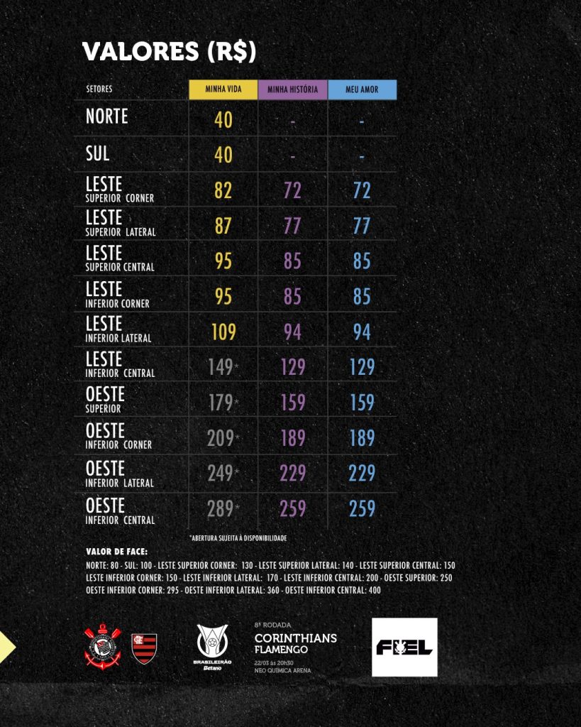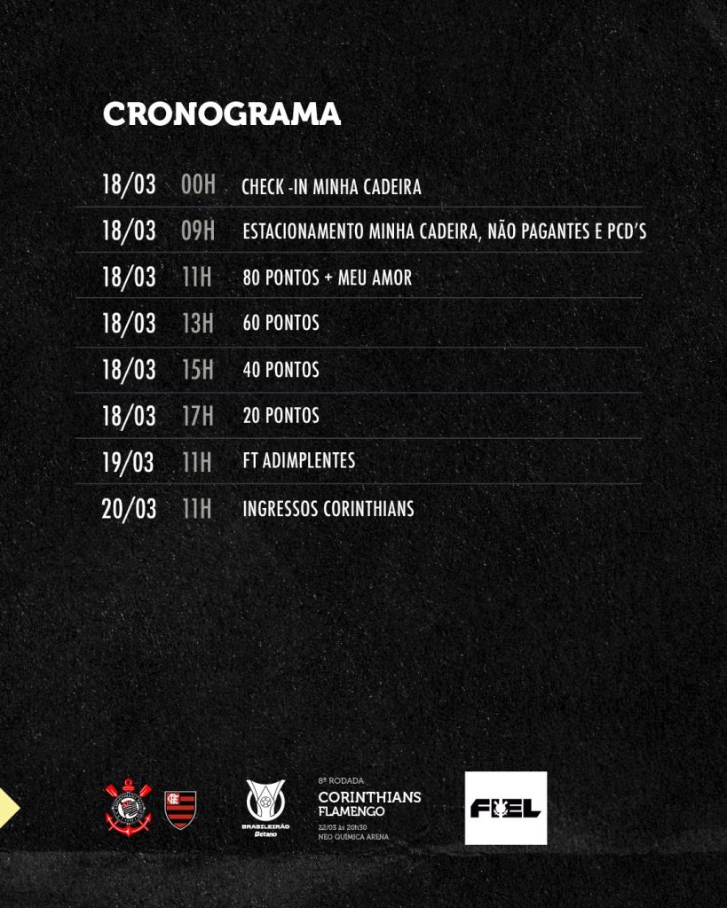 Corinthians detalha venda de ingressos para confronto diante do Flamengo pelo Brasileirão