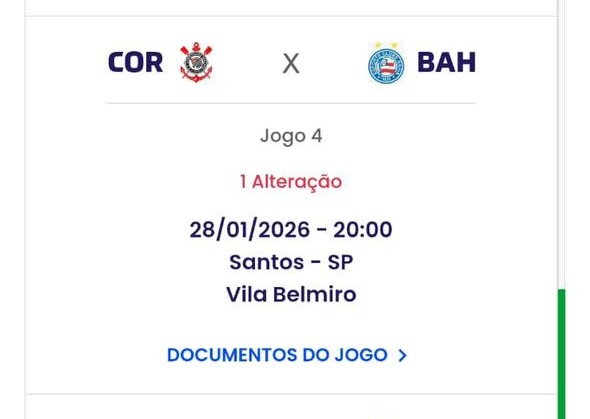 Corinthians e Santos firmaram um acordo envolvendo a utilização de seus estádios por conta de ajustes no calendário do futebol brasileiro. O Timão tem compromisso marcado contra o Velo Clube, no Benitão, no dia 25, pelo Campeonato Paulista, e na sequência enfrentaria o Bahia na Neo Química Arena, no dia 29, pelo Campeonato Brasileiro. Já o Flamengo, adversário do Corinthians na final da Supercopa do Brasil, joga no dia 28, em São Paulo.