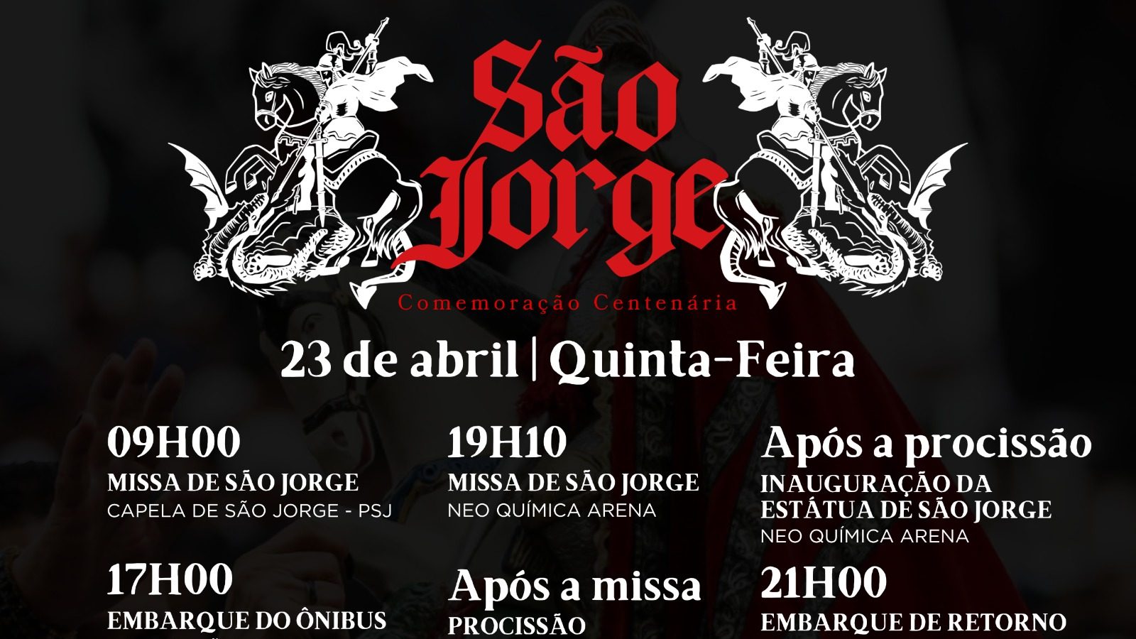 O Corinthians definiu a programação especial para o Dia de São Jorge, celebrado em 23 de abril, data que também marca o centenário do Parque São Jorge, sede social do clube. As atividades incluem celebrações religiosas e a inauguração de uma estátua em homenagem ao padroeiro alvinegro.