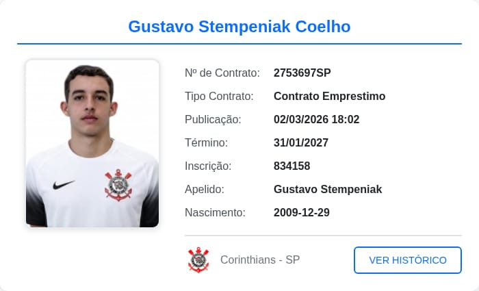 Em janeiro, a equipe em questão havia antecipado a ida dos dois atletas ao Parque São Jorge. Conforme antecipado anteriormente pelo Meu Timão, ambos possuem vínculo até janeiro de 2027 e, caso se destaquem com a camisa corinthiana, poderão ser comprados pelo Alvinegro. Os dois chegam para compor a equipe Sub-17 (geração 2009 e 2010), que disputará Campeonato Paulista e Brasileirão da categoria.