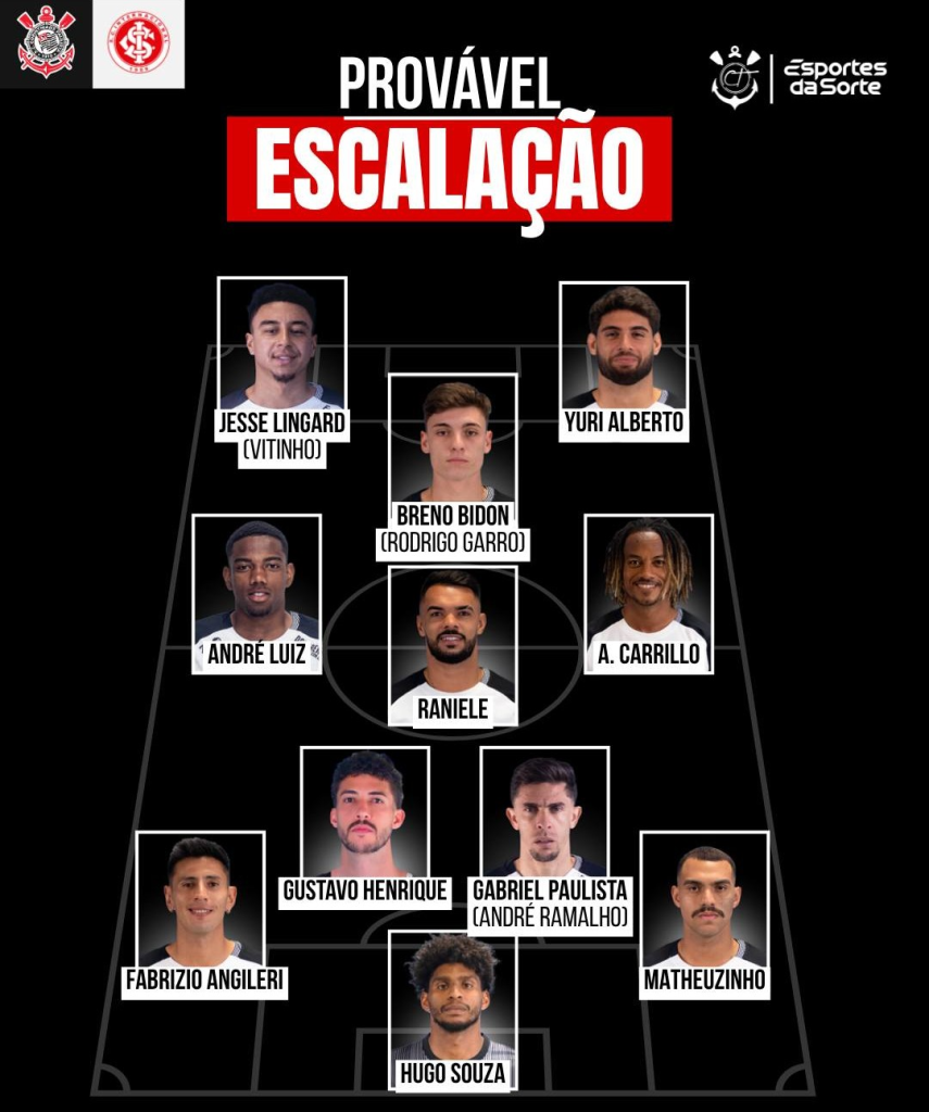 Provável escalação e desfalques do Corinthians