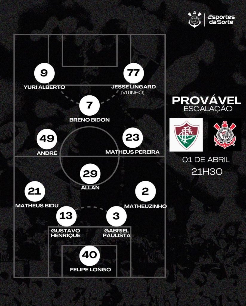 A grande novidade fica pela provável estreia de Jesse Lingard, que vem treinando bem, já teve sua situação regularizada junto à CBF e está livre para atuar. Assim, uma provável escalação do Corinthians de Dorival Júnior conta com: Felipe Longo; Matheuzinho, Gabriel Paulista, Gustavo Henrique e Matheus Bidu; Allan, André, Matheus Pereira (Rodrigo Garro) e Breno Bidon; Jesse Lingard e Yuri Alberto.