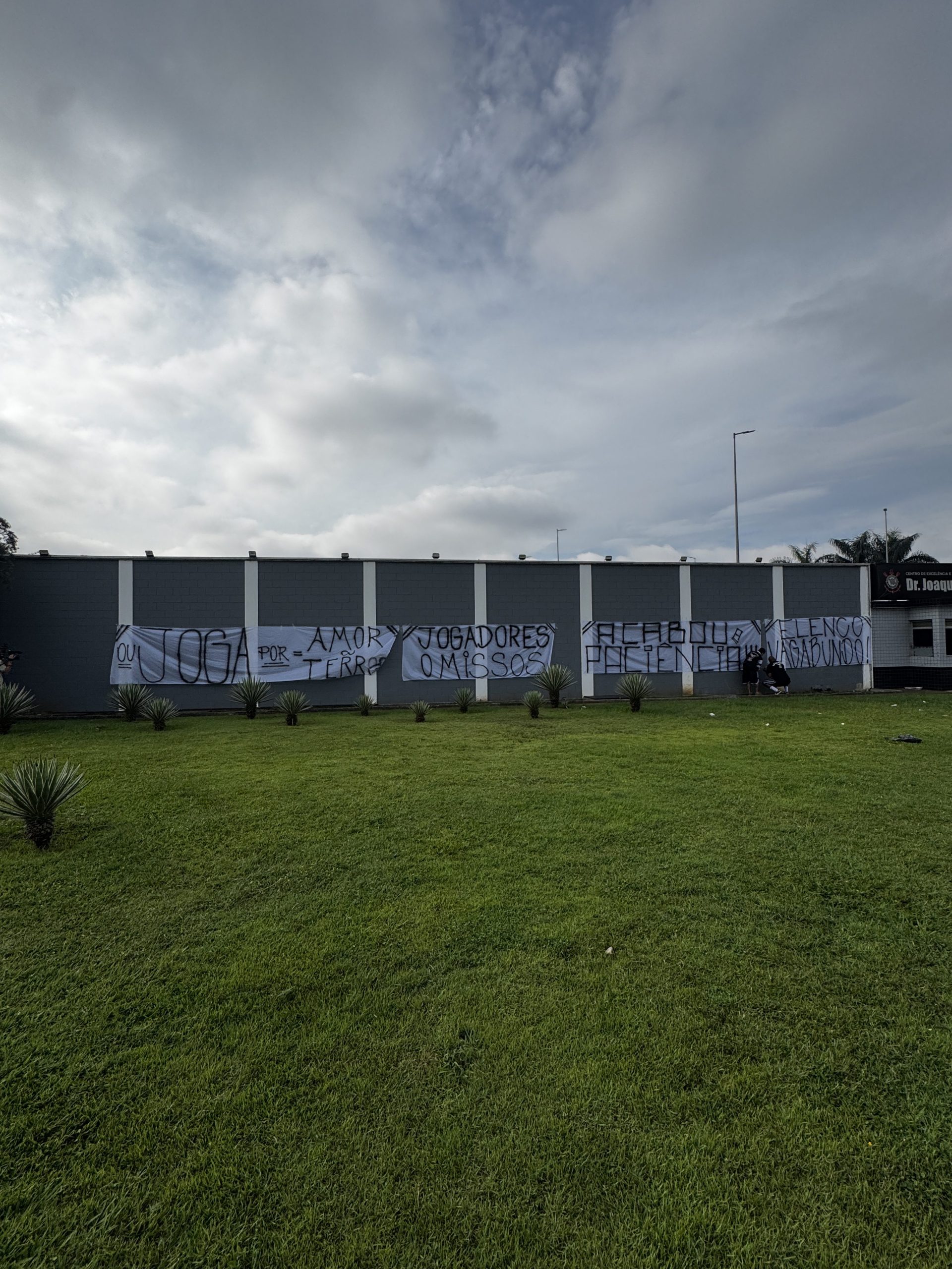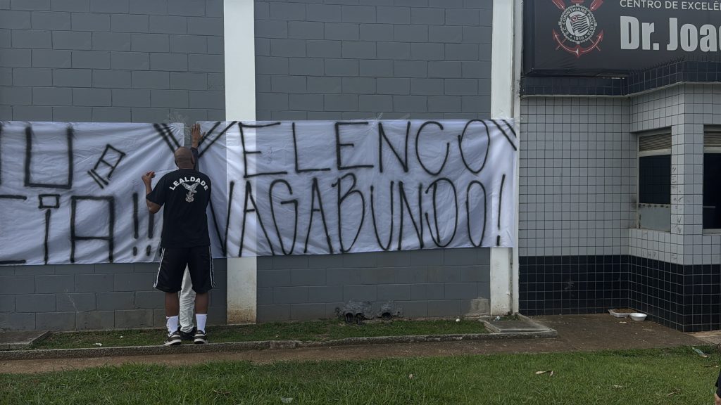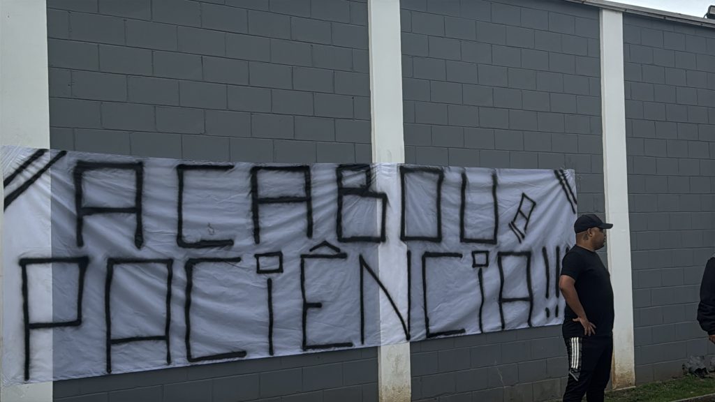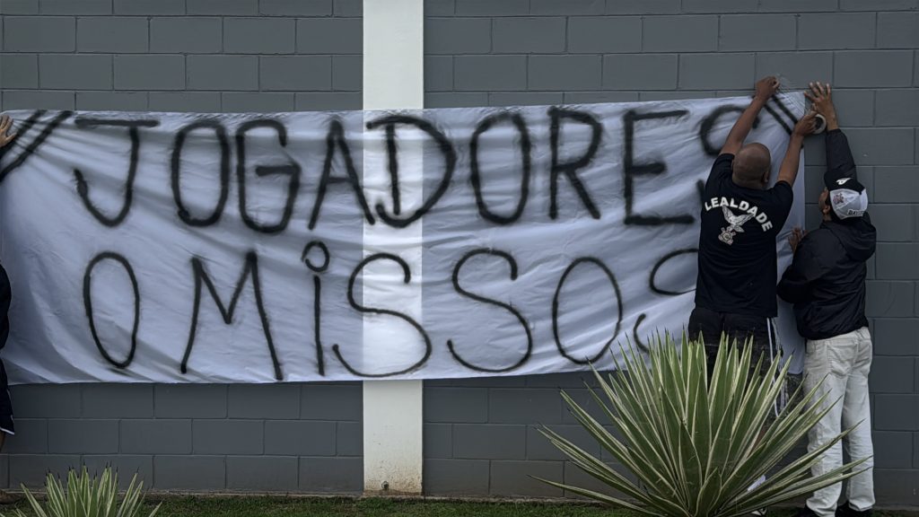 Entre as mensagens exibidas estavam: “Elenco vagabundo!”, “Acabou a paciência”, “Jogadores omissos” e “Ou joga por amor ou joga por terror”, evidenciando a insatisfação com o momento vivido pela equipe.