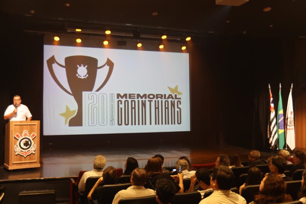Ao final do evento, integrantes do Departamento Cultural do Corinthians subiram ao palco para destacar o trabalho desenvolvido na documentação, comunicação e preservação do acervo histórico corinthiano, ressaltando a importância do Memorial como instrumento de memória e identidade do clube.