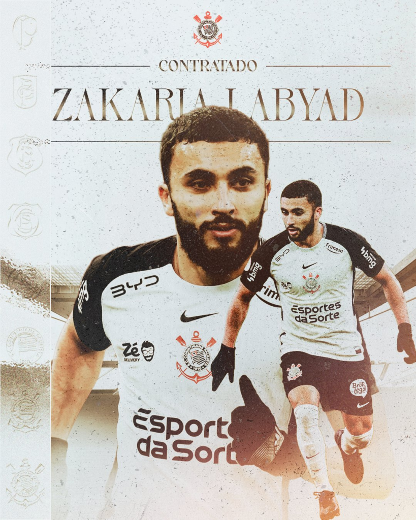 Na tarde desta sexta-feira (20), o Corinthians oficializou a chegada do meia Zakaria Labyad, de 33 anos, até o final da atual temporada. O marroquino é o sexto reforço da equipe para este ano. Anteriormente, foram contratados: o zagueiro Gabriel Paulista, o lateral-direito Pedro Milans, o volante Allan, o meio-campista Matheus Pereira e o atacante Kaio César.