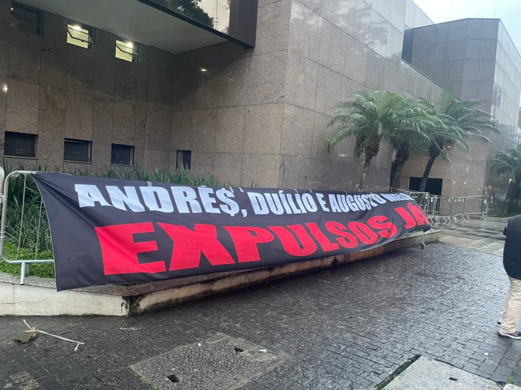 Antes mesmo do início da sessão, os torcedores já exibiam mensagens direcionadas a conselheiros e ex-presidentes do clube logo na entrada do Parque São Jorge. Entre os pedidos mais recorrentes estavam a exclusão de associados que, segundo os manifestantes, “roubam” o Corinthians, a concessão do direito de voto aos integrantes do programa Fiel Torcedor e a expulsão dos três últimos presidentes do clube: Augusto Melo, Duilio Monteiro Alves e Andrés Sanchez.